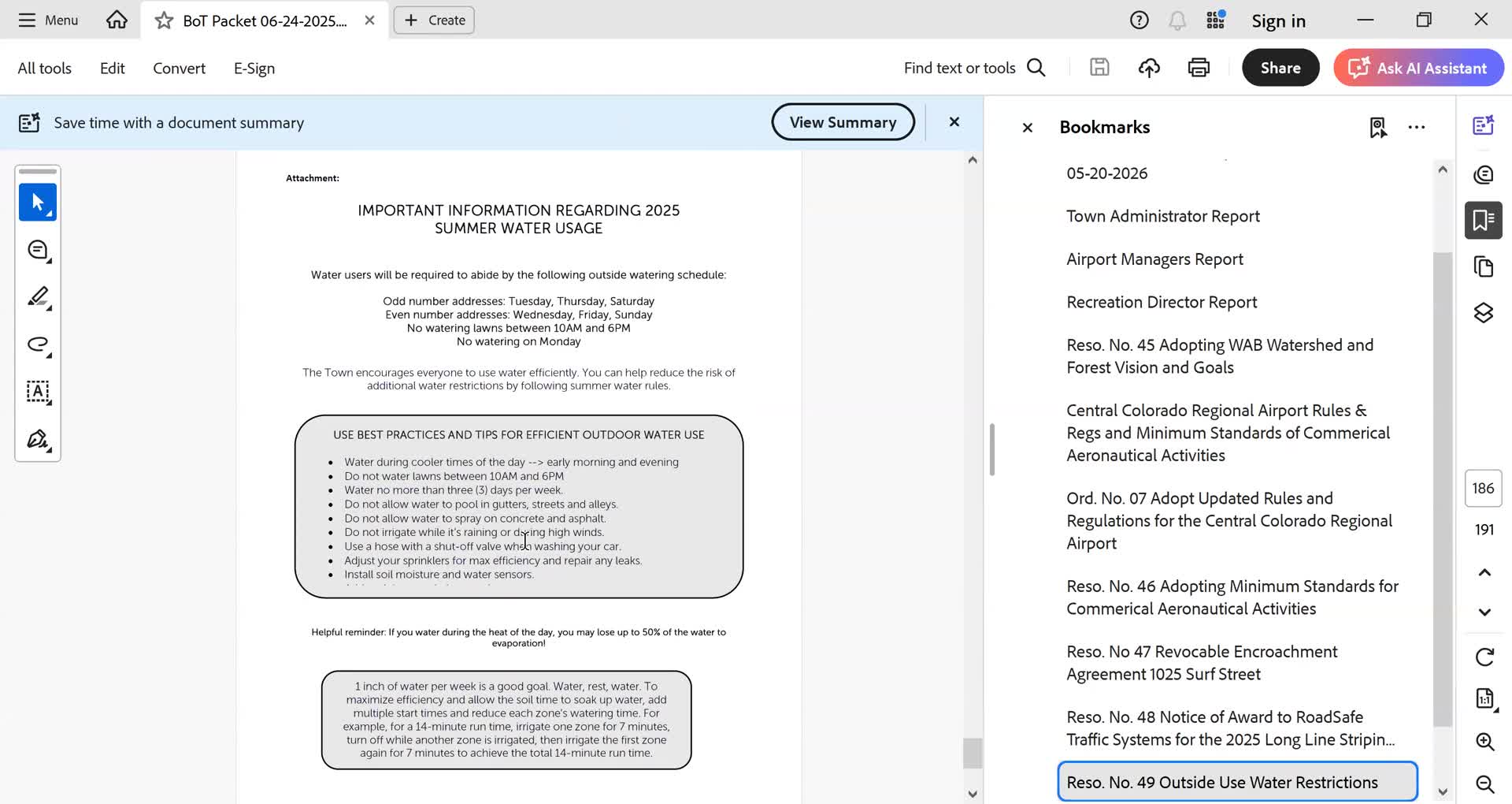 Board adopts outside-watering schedule for 2025; trustees change wording from "restriction" to "schedule"