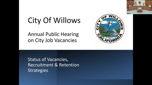 Willows holds first AB 2561 annual hearing on job vacancies; city reports low vacancy rate but notes turnover