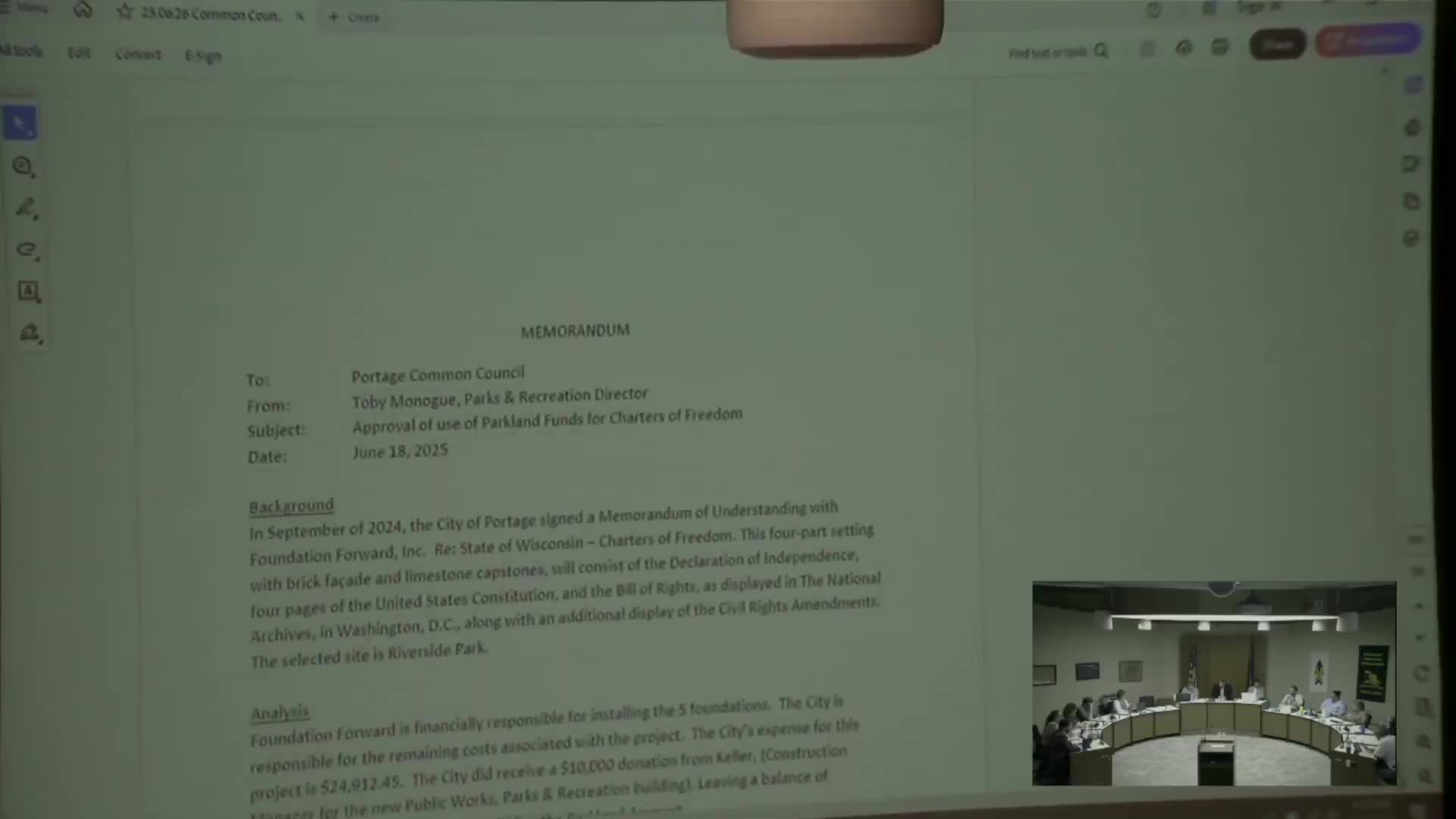 Portage council approves parkland funds to complete Charters of Freedom installation