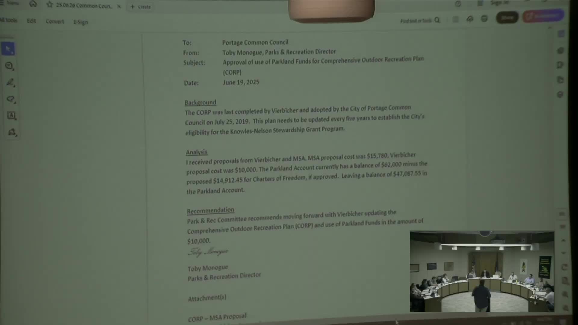 Council OKs $10,000 from parkland fund for comprehensive outdoor recreation plan update