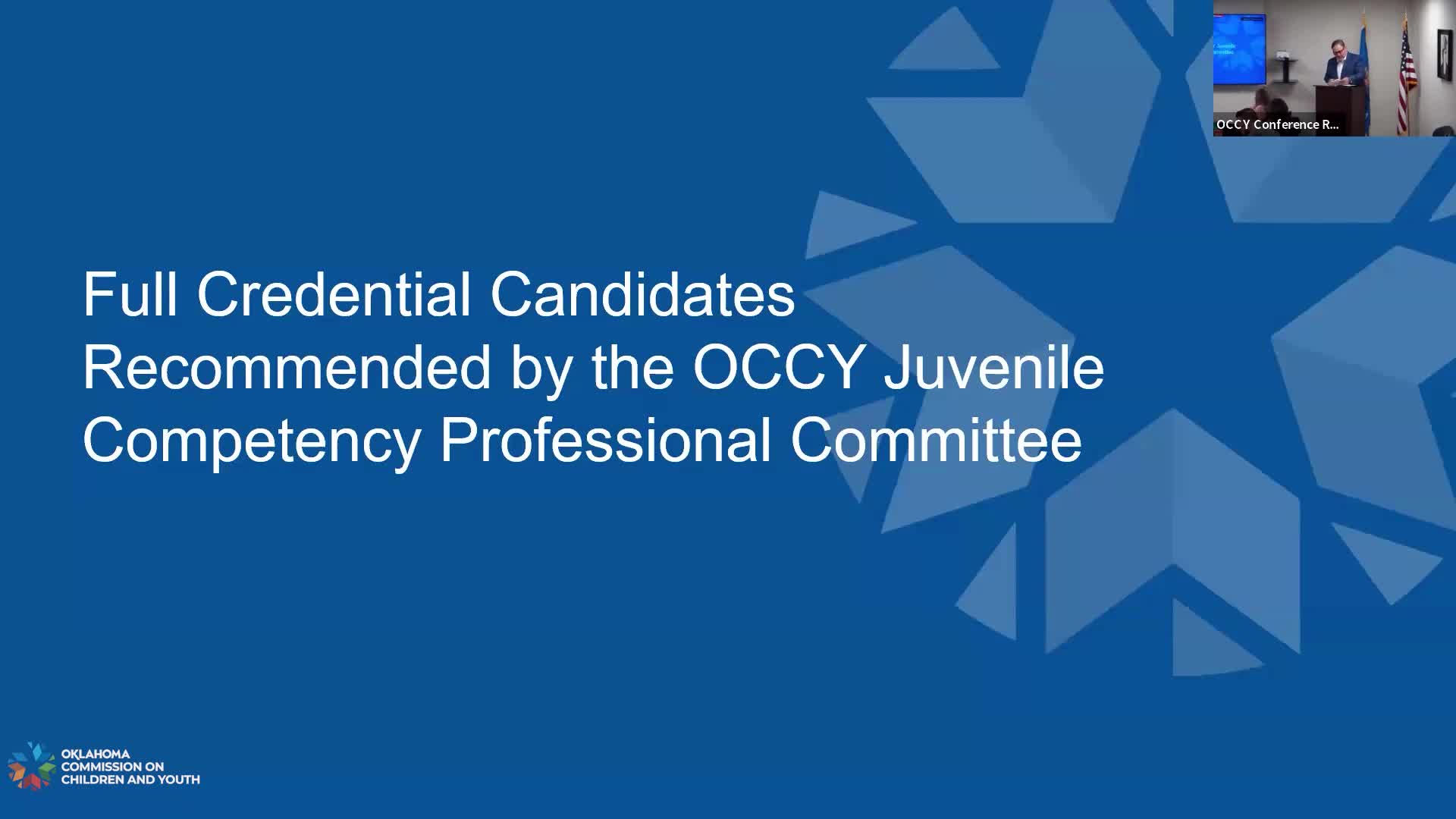 Commission approves two full juvenile competency evaluators and names provisional candidates after training