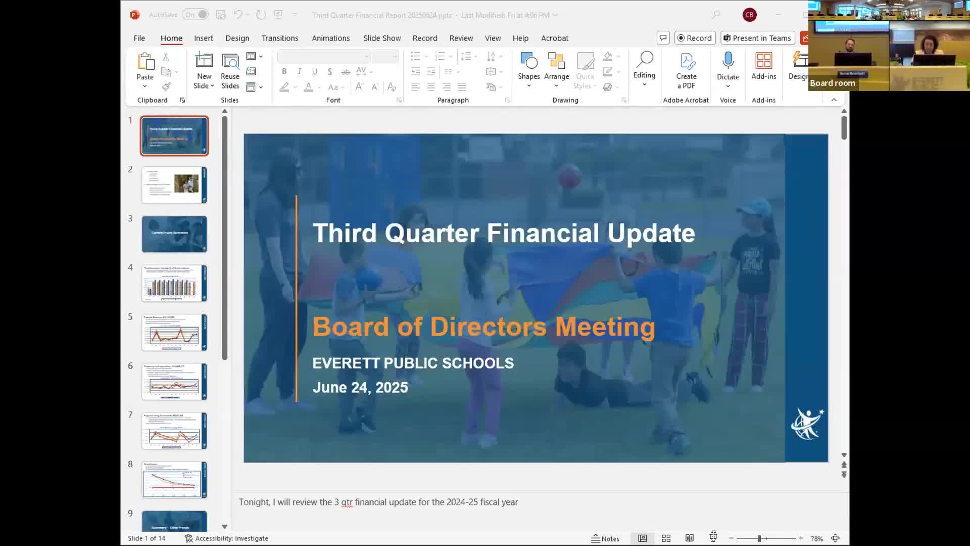 Third‑quarter report: Everett Public Schools projects fund balance above budget, no mid‑year reductions planned