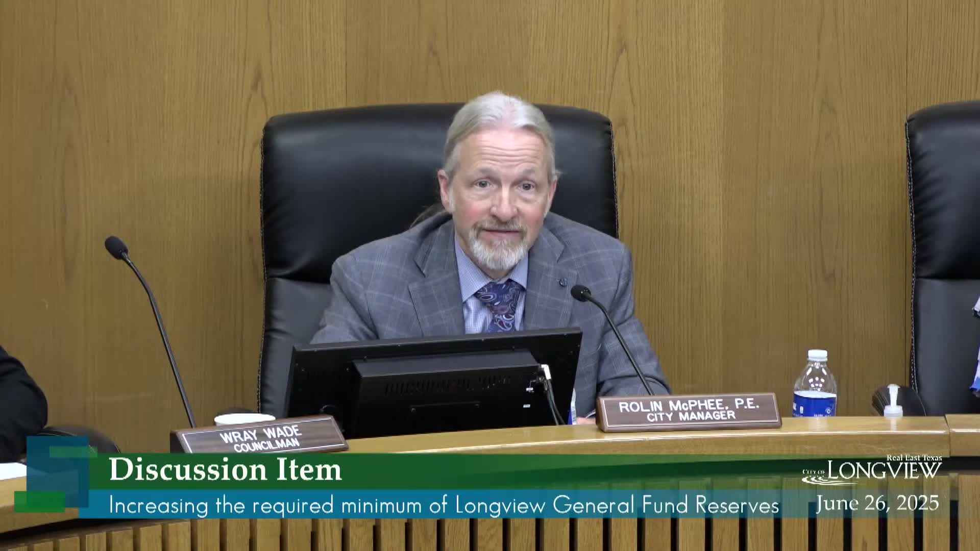 Longview council weighs raising minimum general‑fund reserve to 15%