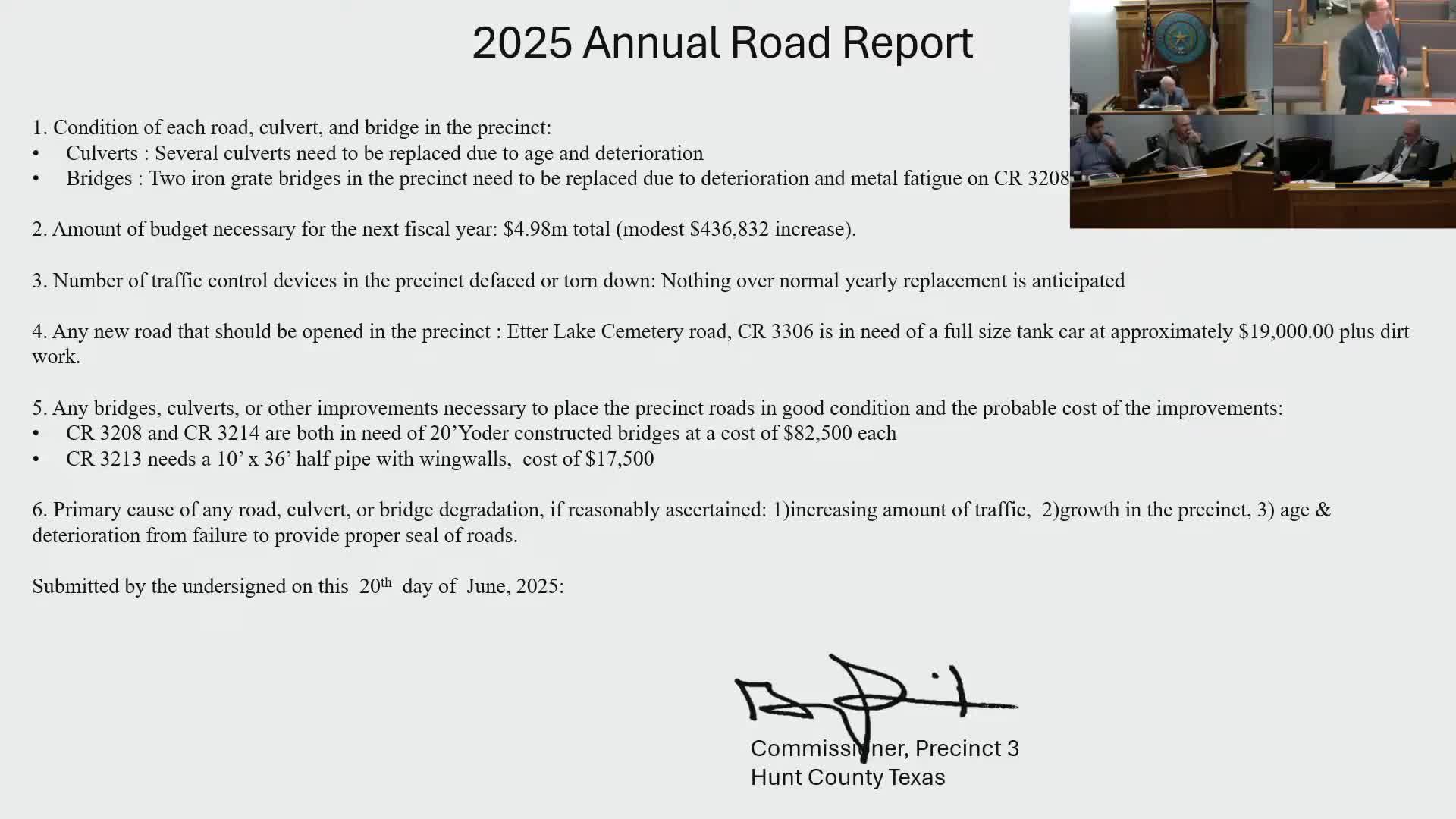 Precinct 3 seeks $4.9 million for road maintenance; commissioners flag culverts, equipment and barn repairs