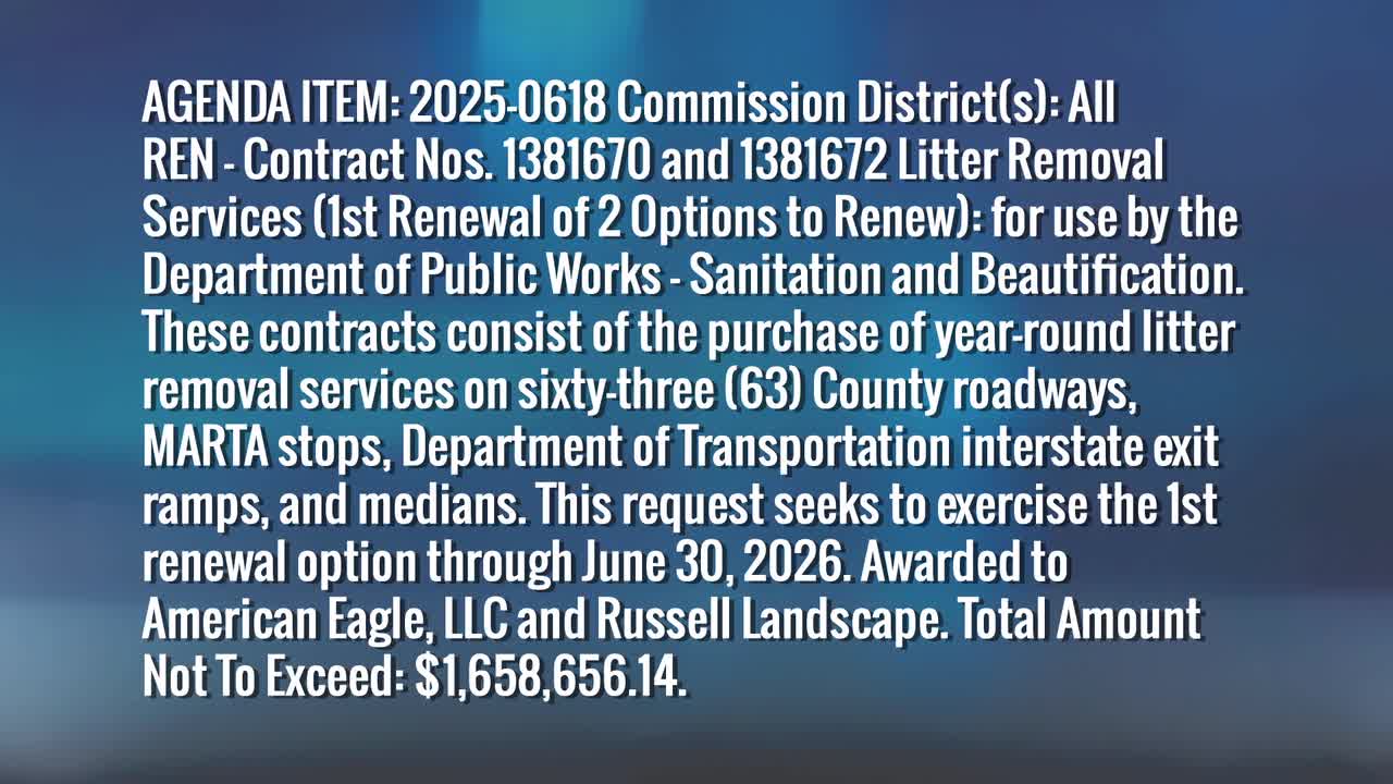 County renews litter-removal contracts; administration projects $644,124 in annual savings