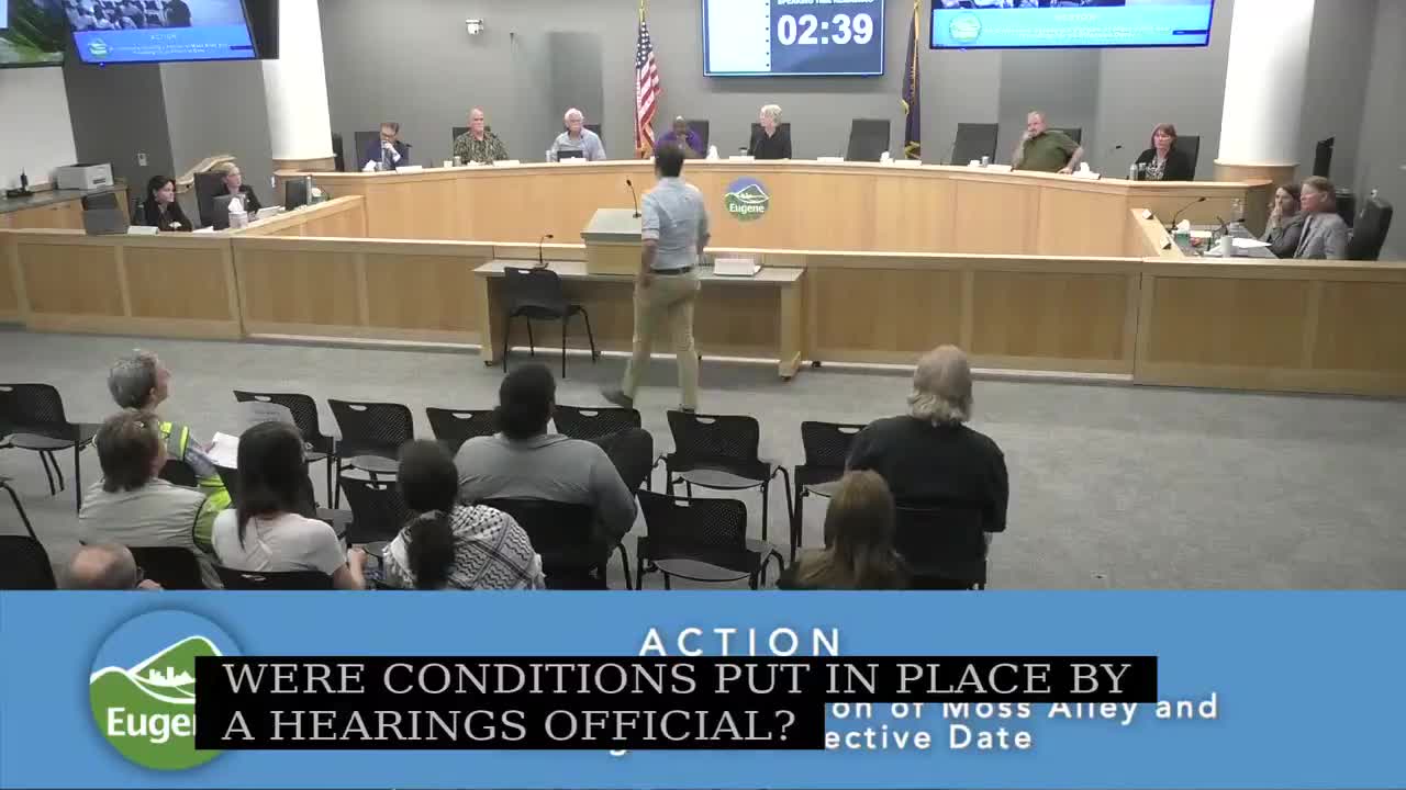 Council approves Moss Alley vacation after planner explains removal of site‑review overlay; neighbors press for enforceable delivery routing