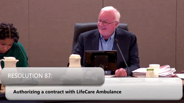 Commission approves two‑year ambulance contract; members ask for disaggregated high‑priority response data