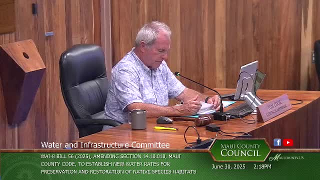 Committee endorses discounted water rate for native‑habitat restoration; sends Bill 56 to council on first reading