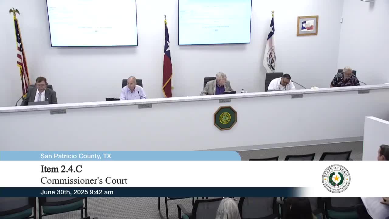 San Patricio County Commissioners approve routine claims, contracts and personnel actions; several items tabled