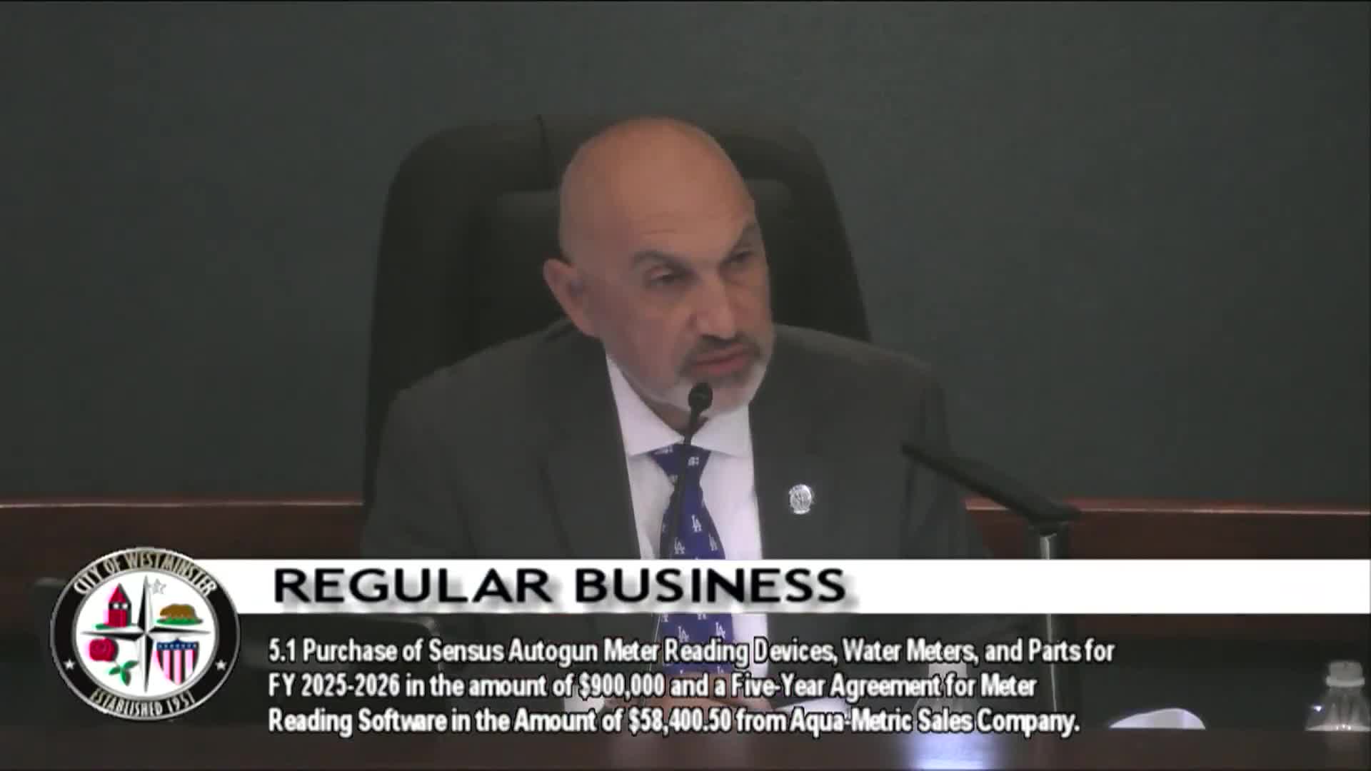 Westminster council approves $900,000 open purchase order for smart water meters and software