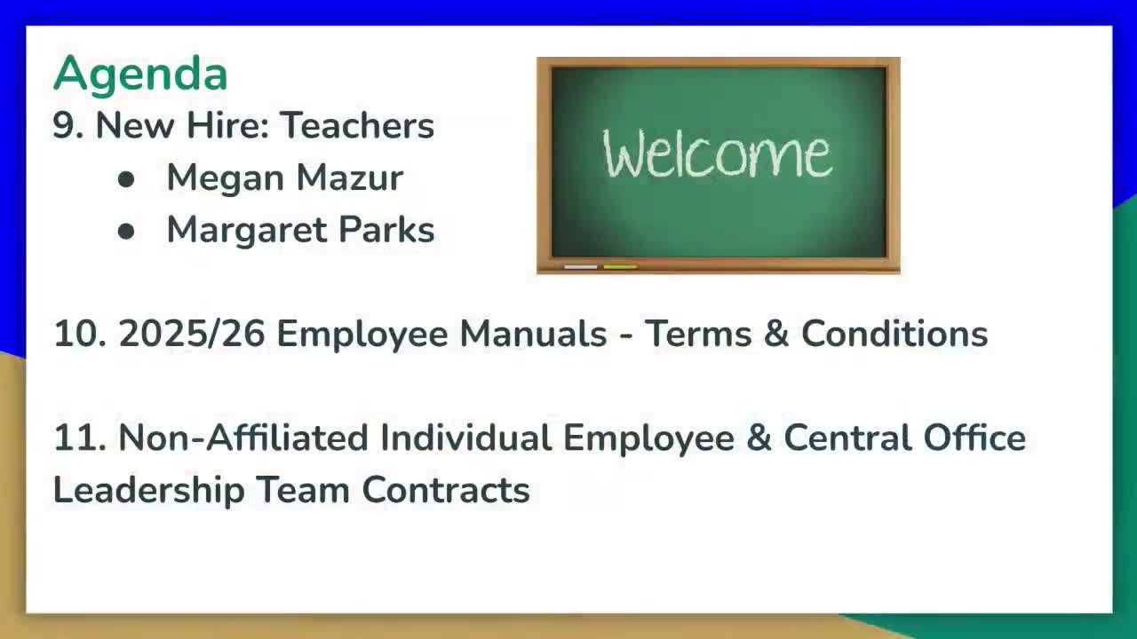 Board approves teacher hires, employee manual updates and leadership contracts; superintendent contract renewed