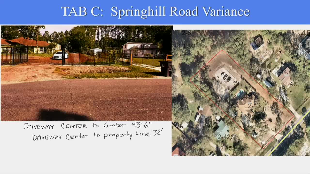 Driveway spacing variance on Spring Hill Road sent to county engineer after no departmental objections