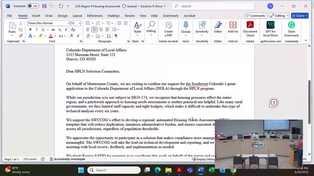 Southwest Colorado COG asks Montezuma County for support to automate state-required housing needs assessments