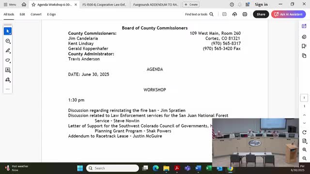 Montezuma County officials recommend countywide fire ban; effective time discussed at 6 a.m. on Wednesday