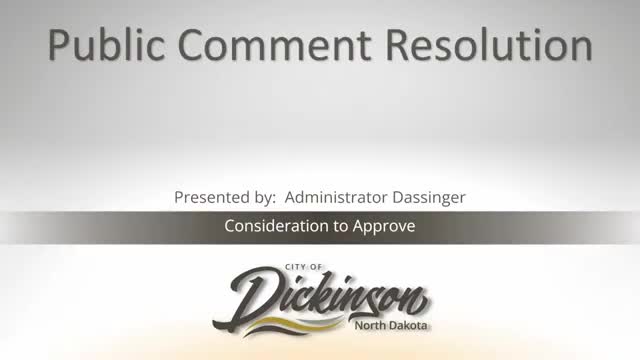Dickinson adopts model public‑comment policy tied to state law; limits comments to current or previous agenda items
