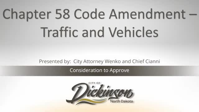 Dickinson commission approves first readings of traffic code updates, tightens rules for UTVs and off‑road vehicles