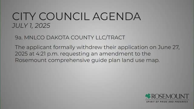 Applicant withdraws proposed 420‑acre comprehensive‑plan amendment east of Rosemount