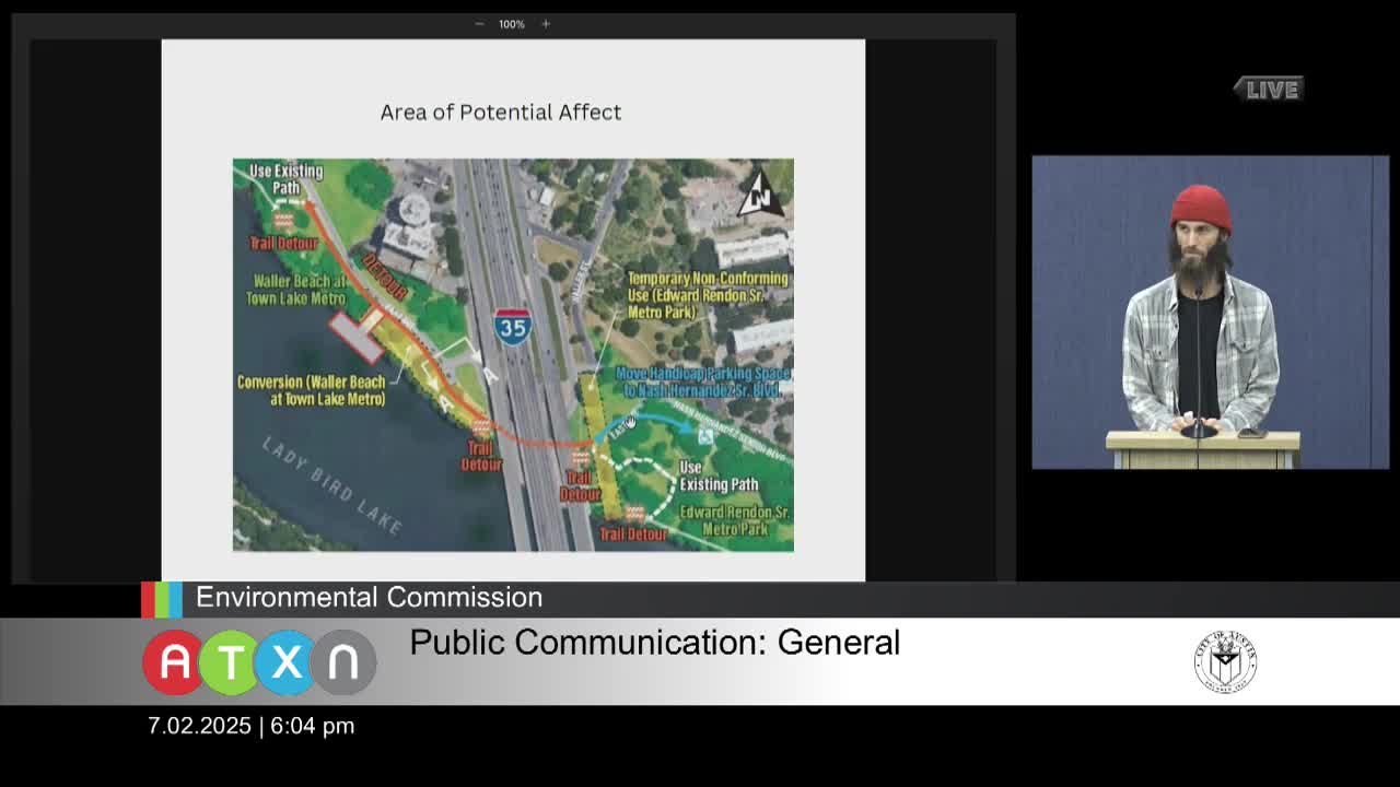 Public commenter raises concerns about TxDOT condemnation of Edward Rendon Senior Parkland and potential removal of historic pecan trees