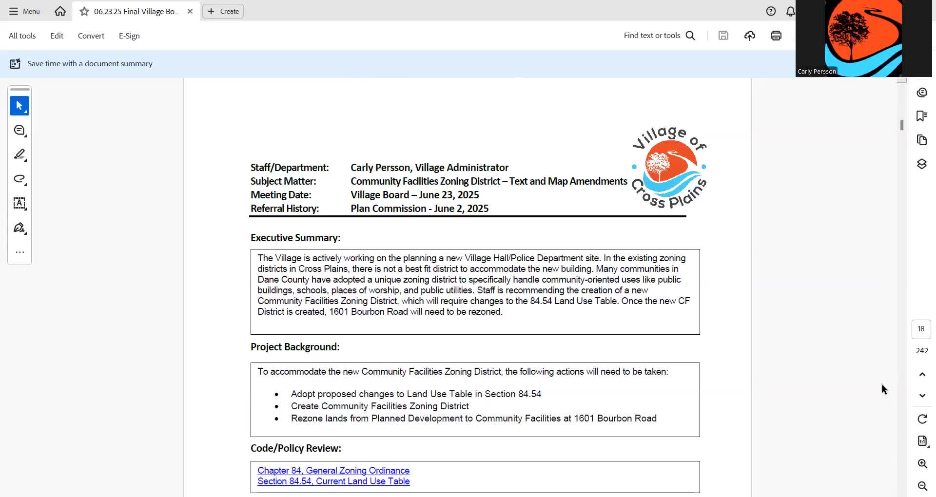 Board creates community facility zoning district, approves technical fixes to land‑use table and setbacks