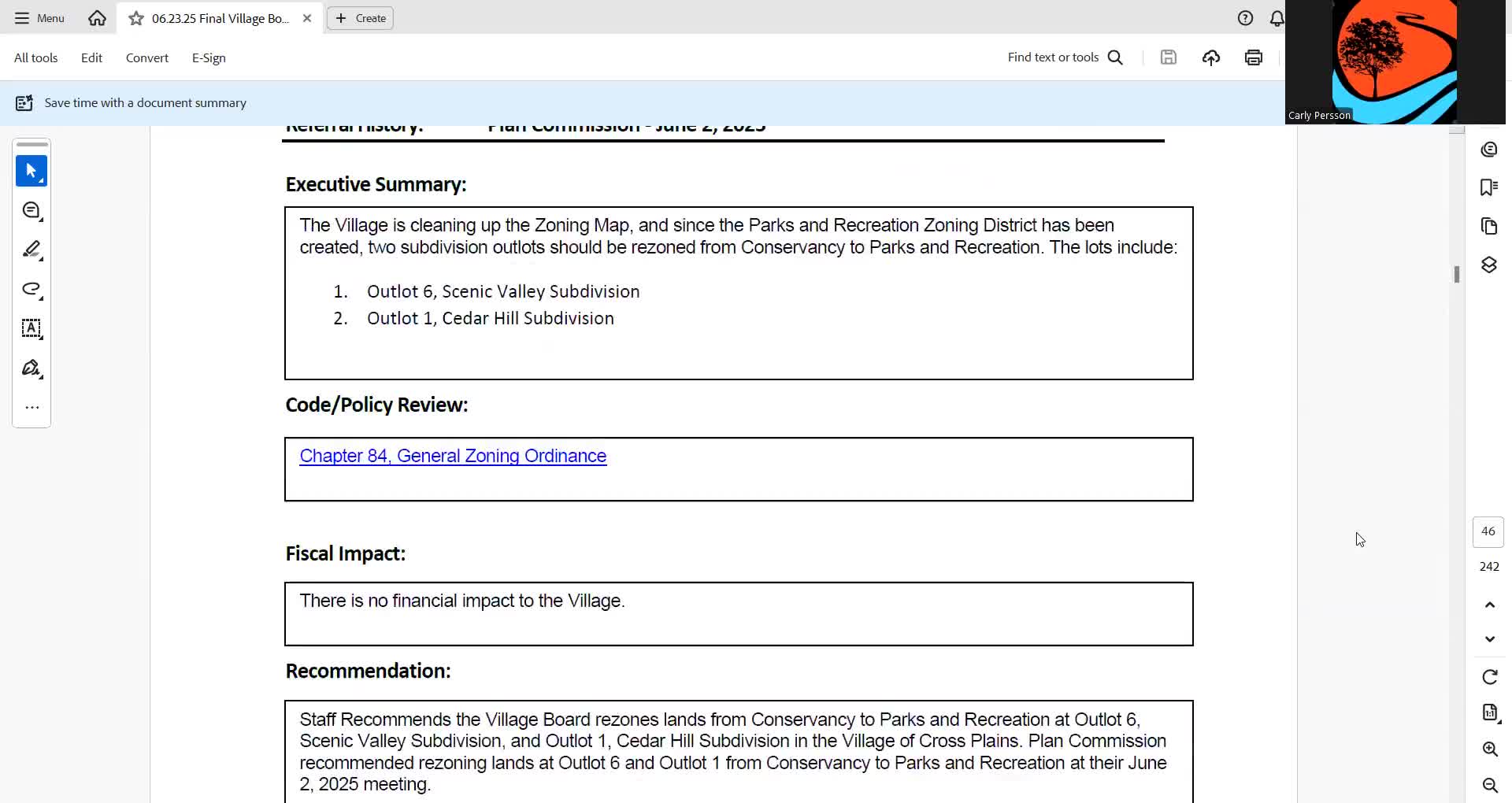 Board rezones two village outlots to Parks and Recreation after residents raise conservancy concerns