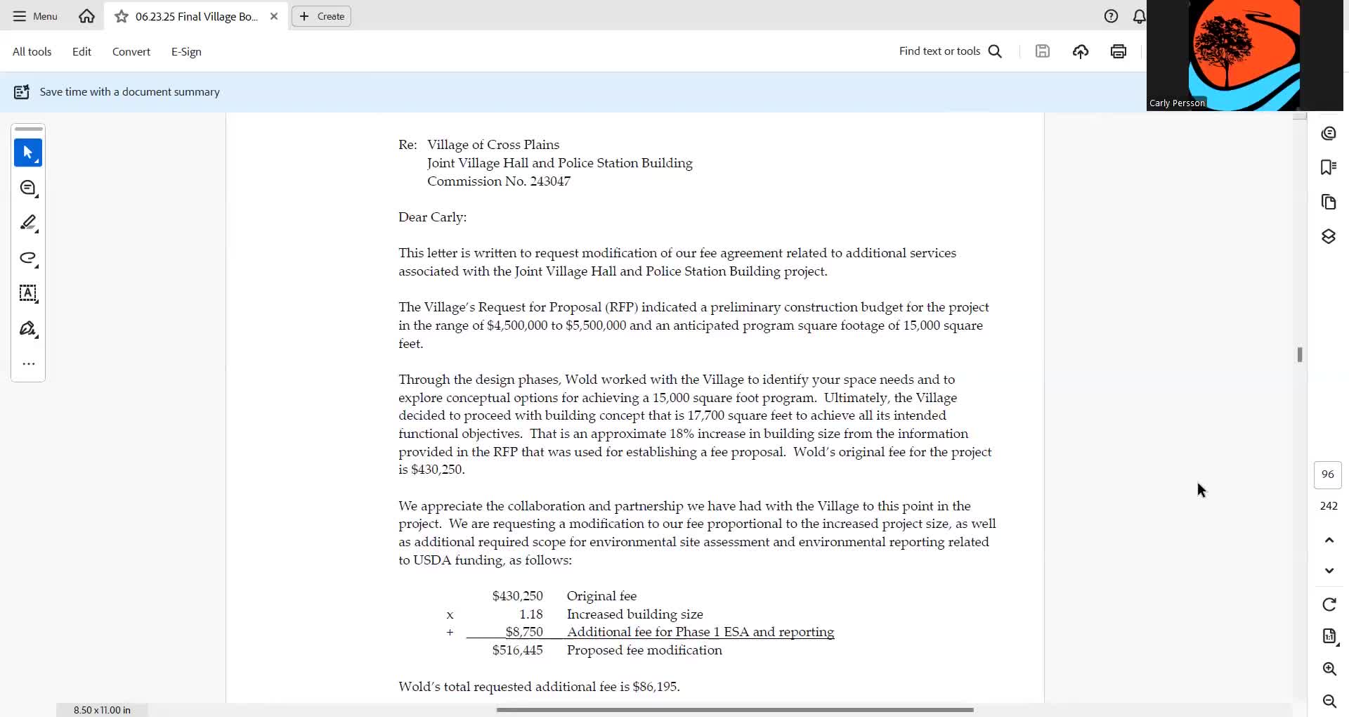 Trustees approve Wold fee increase for larger village hall; geothermal option debated and not adopted
