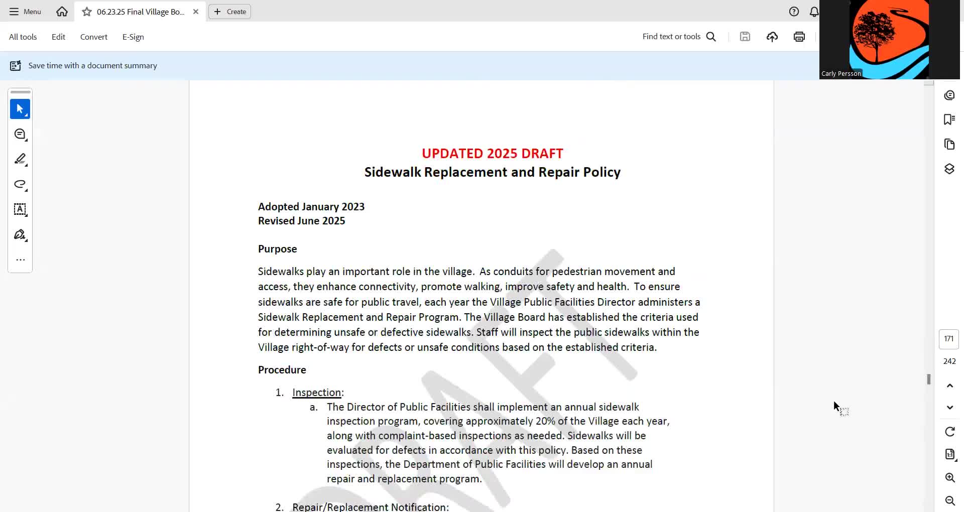Board adopts clarified sidewalk replacement policy, tightens payment options and enforcement