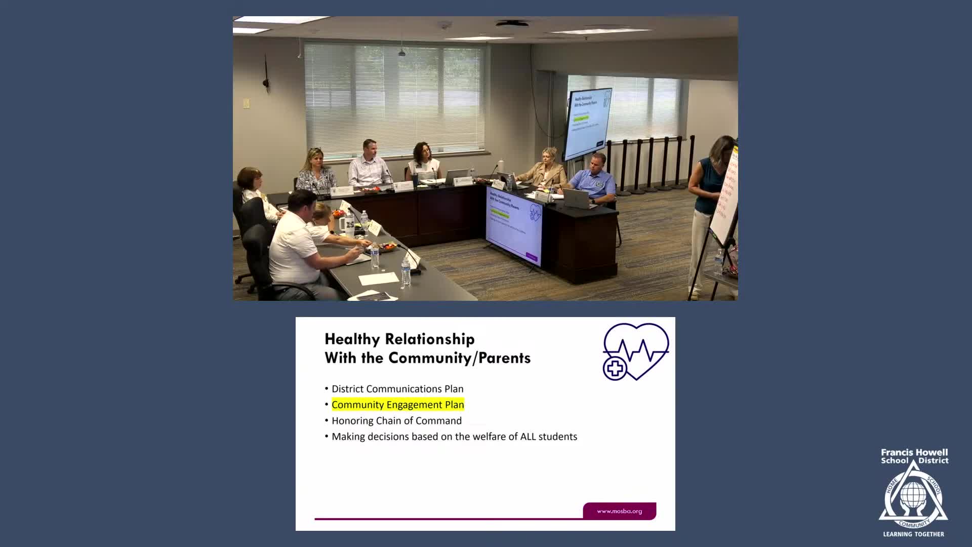 MSBA trainers tell Francis Howell R-III board to adopt two‑way community engagement plan; note new legal requirements