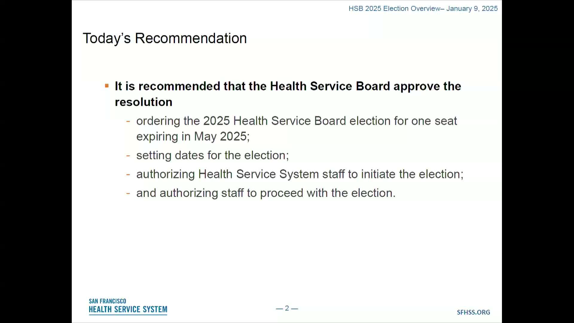 San Francisco Health Service Board meeting — January 8, 2025: votes, elections and next steps