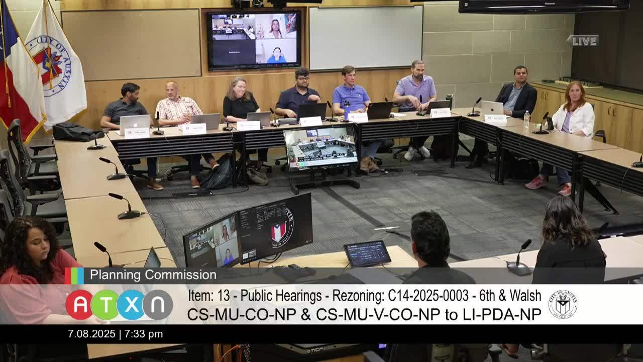 Commission approves Sixth & Walsh rezoning to LIPDA with restrictive covenant, votes hinge on affordable-housing enforcement questions