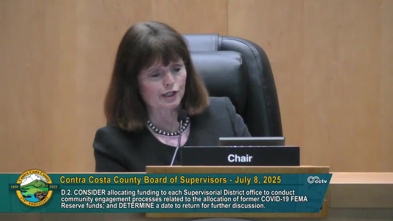 Board sets community engagement process for ARPA/general‑fund reserves, agrees to up to $15,000 per district and delays final allocation to October