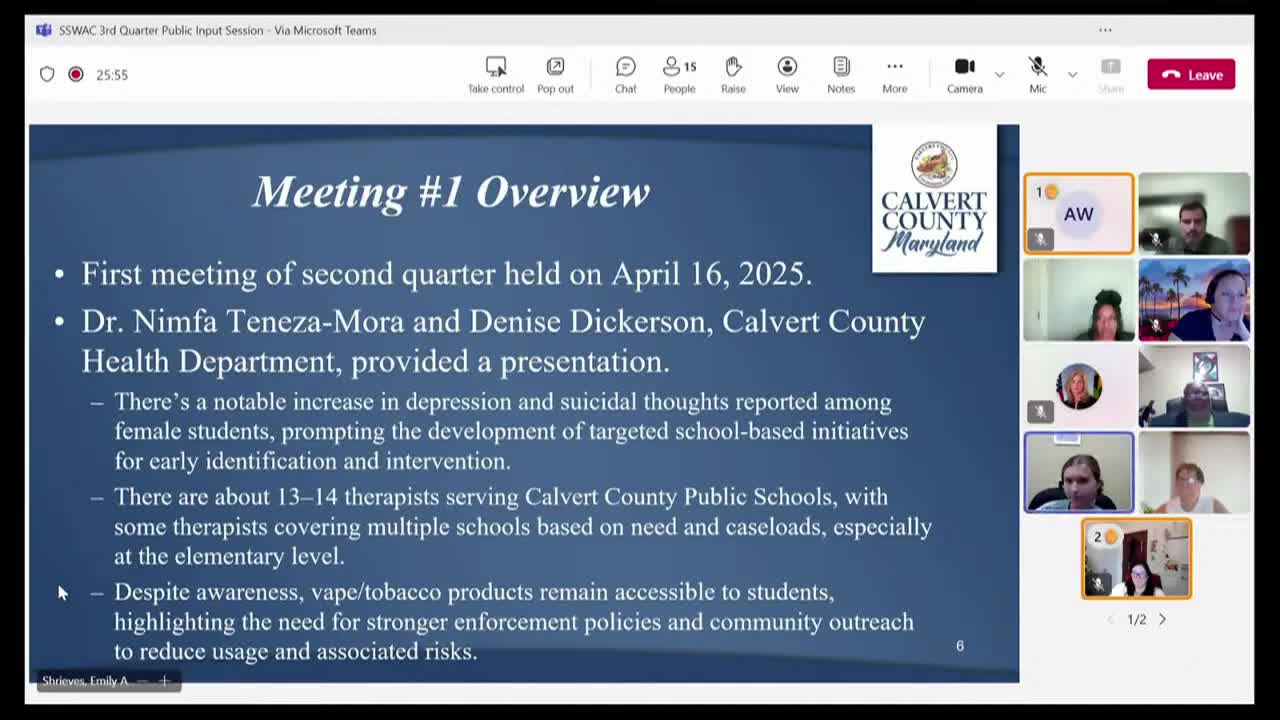 Calvert County advisory panel cites rising depression, vaping and chronic absenteeism; urges districtwide supports