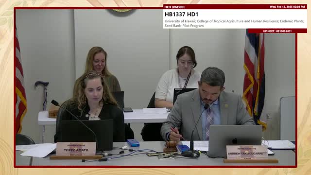 Committee advances bill to create endemic plant seed‑bank pilot; CTAHR estimates $6 million startup cost