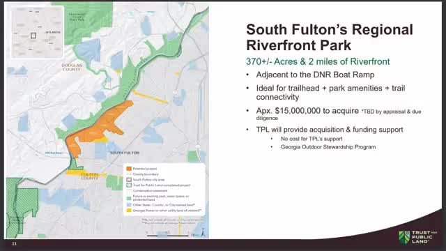 Trust for Public Land asks South Fulton to commit funds and partner on 300‑acre Riverlands regional park