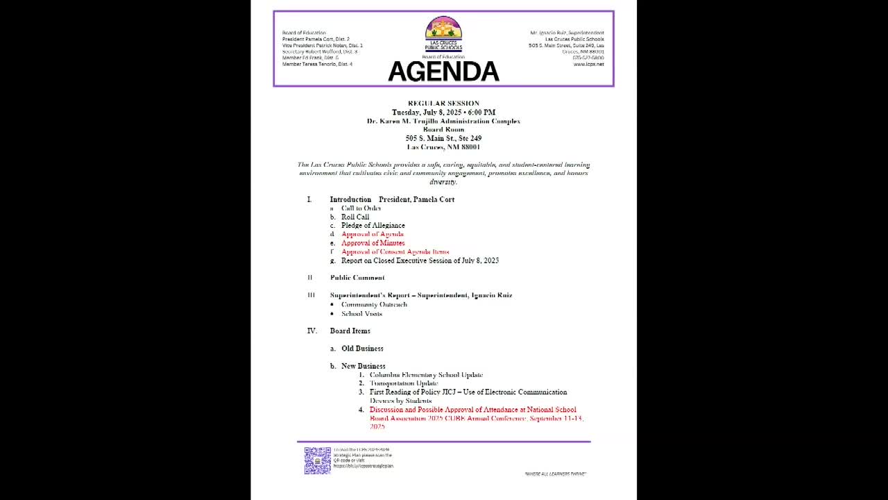 Board approves SRO service agreement with City of Las Cruces; MOU adds substitute-officer, policy-review provisions