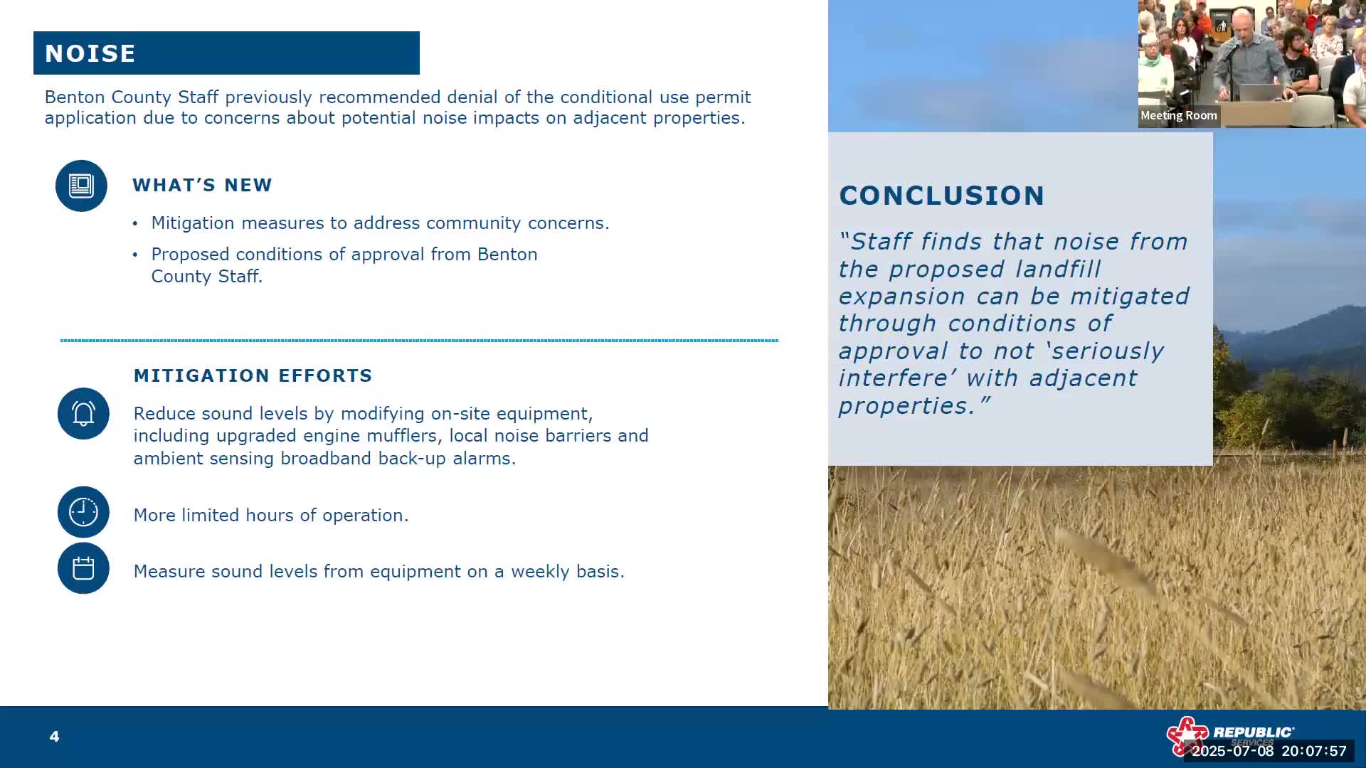 Noise study revised; applicant commits to 10‑decibel on‑site reductions and equipment checks
