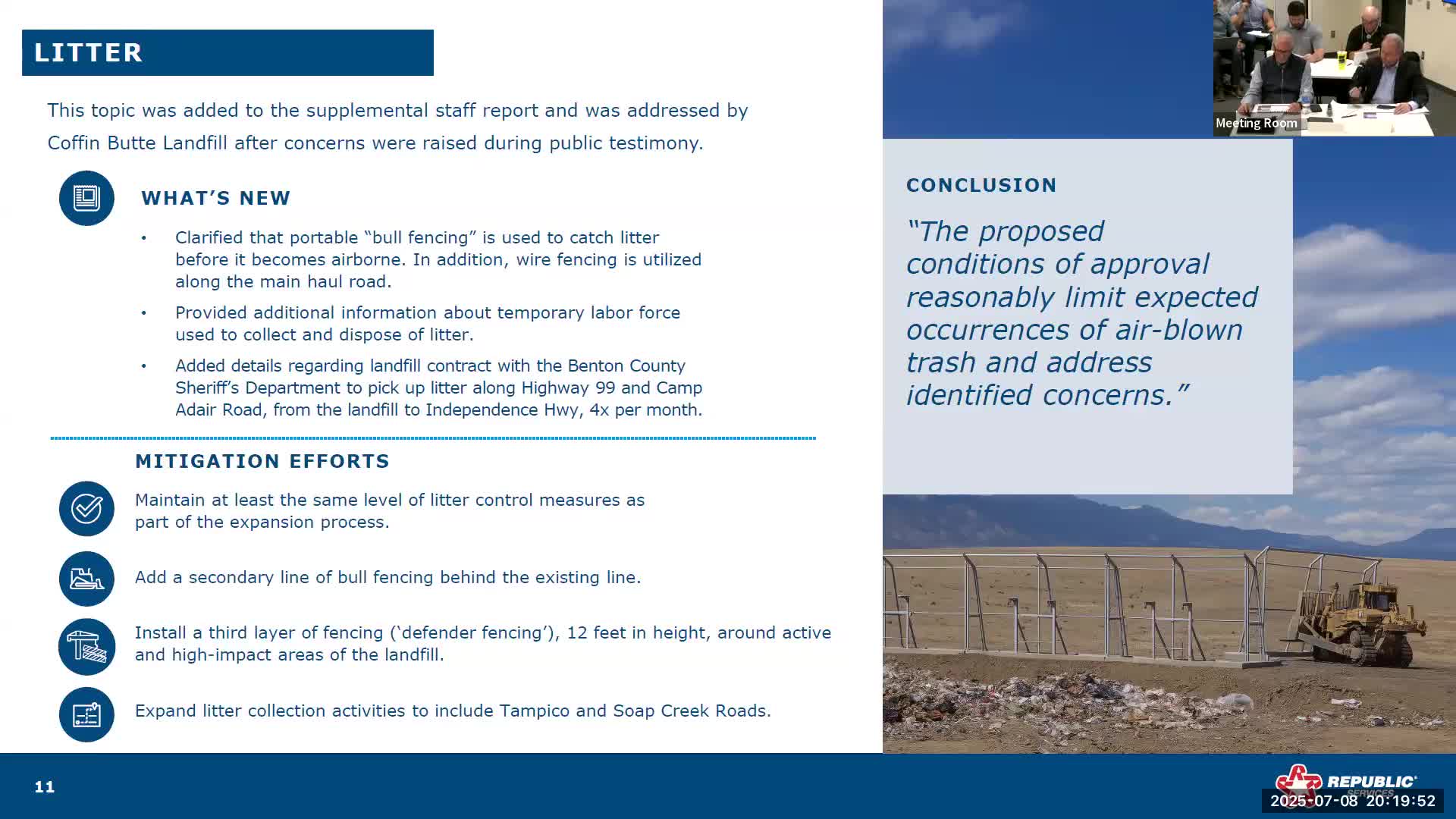 Applicant proposes multi‑layer fencing and expanded litter pickup to limit wind‑blown waste