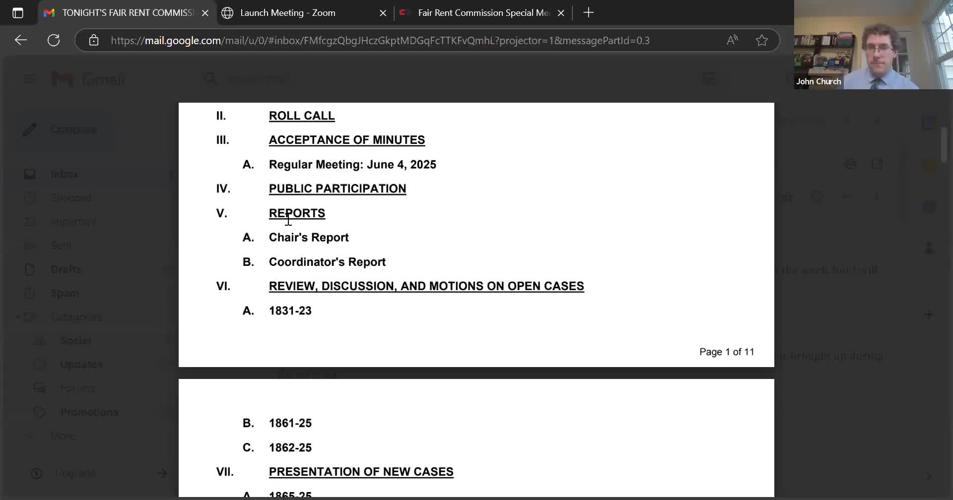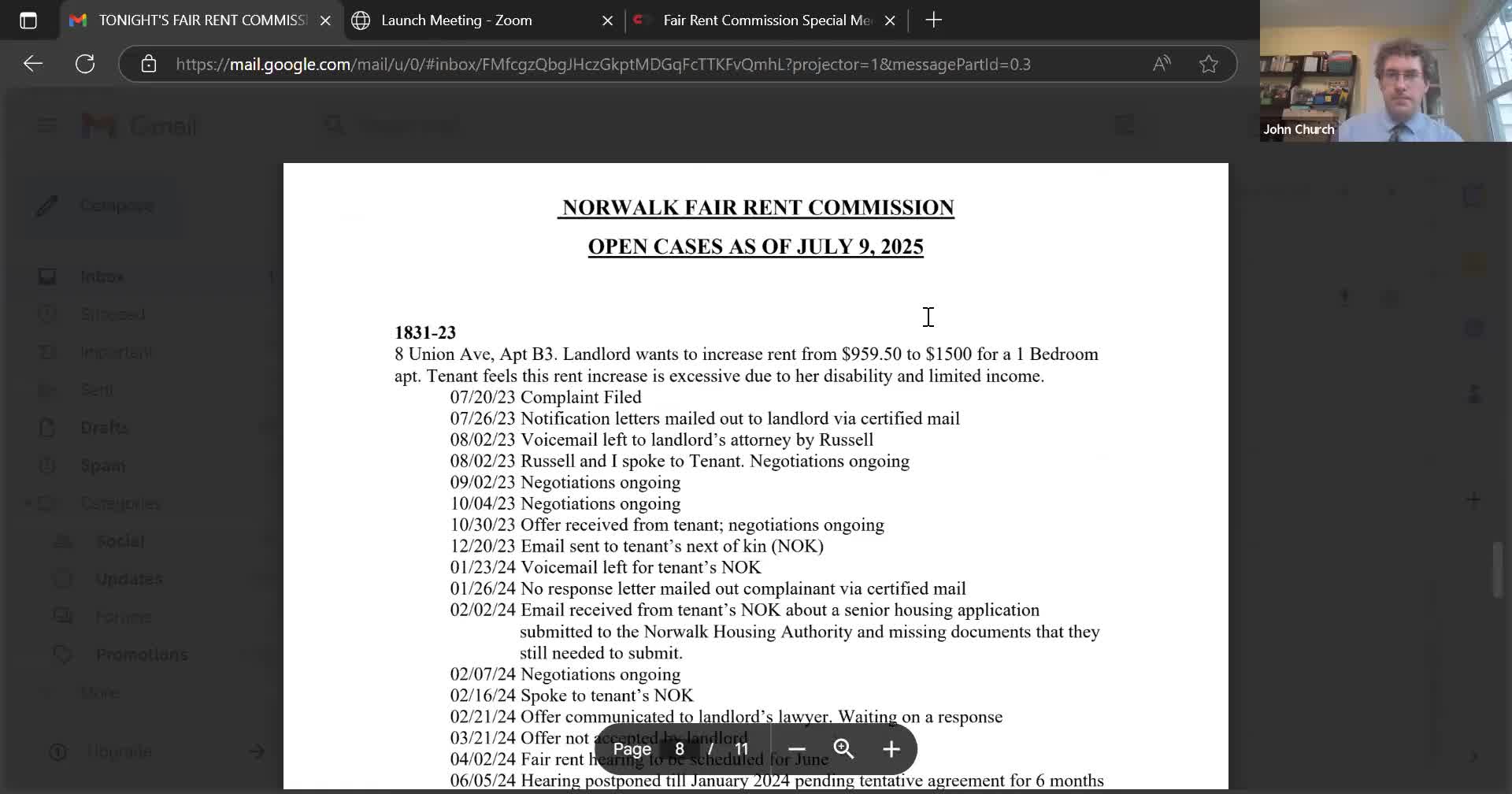 Fair Rent Commission rules on open cases; accepts one new rent-increase complaint