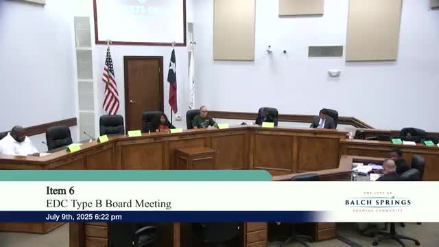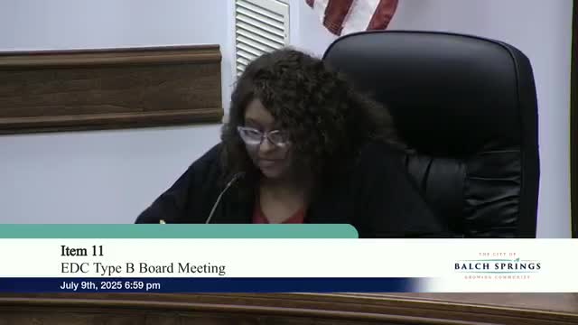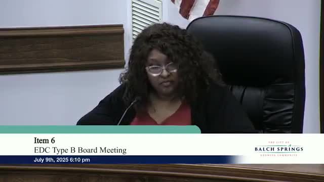 Balch Springs EDC previews FY2026 priorities; confirms $300,000 collector‑road commitment for Alexander Village over two years