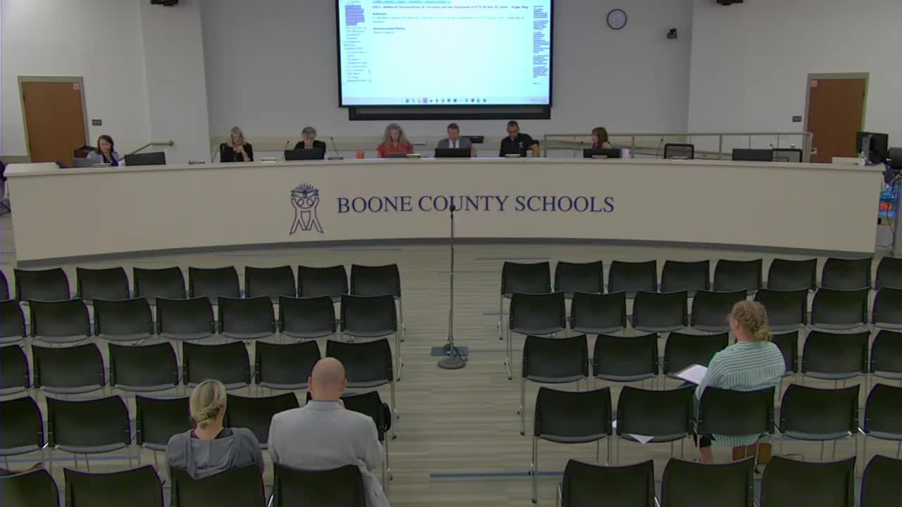 Boone County Schools board approves evaluation plan, assurances, conduct code and consent items; treasurer reports cash decline