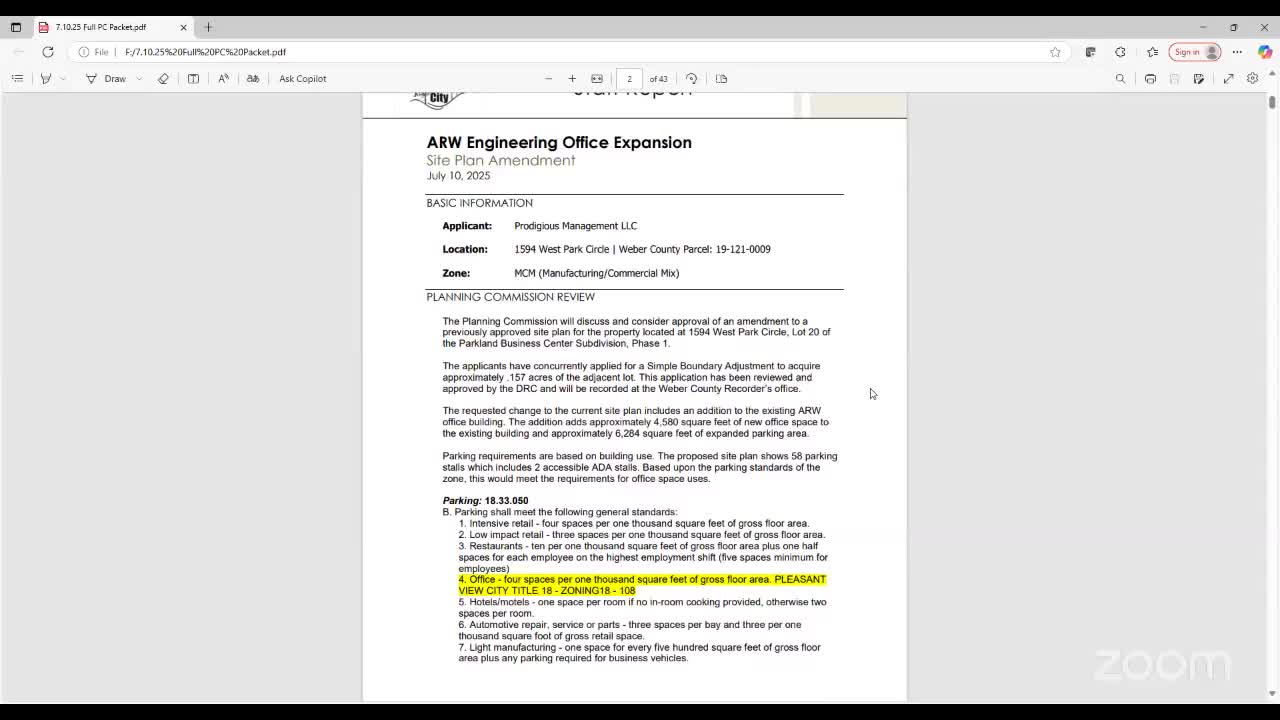 Planning commission approves lot-line adjustment and site plan amendment for ARW Engineering expansion