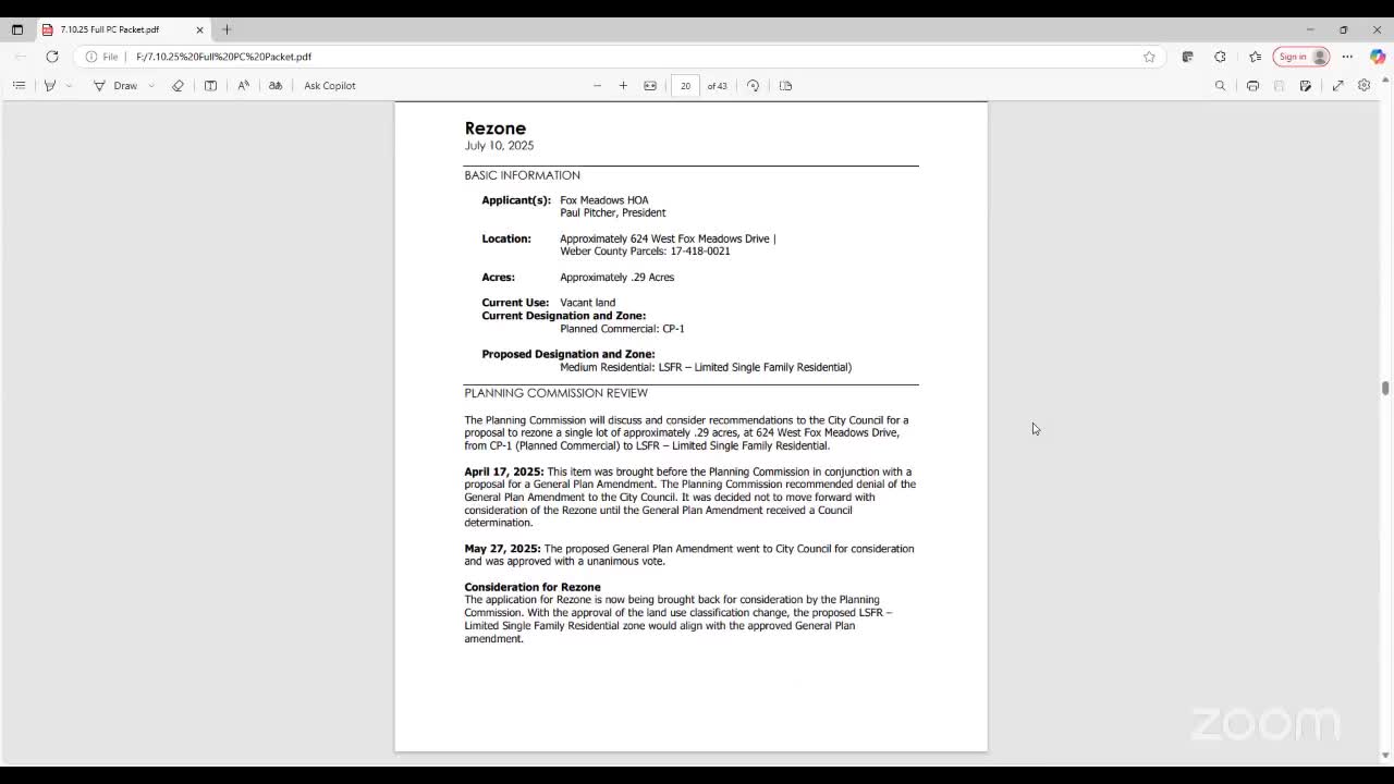 Commission recommends rezoning of Fox Meadows lot to limited single-family residential despite earlier development agreement concerns