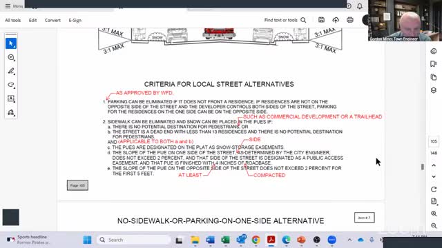 Council adopts revised local‑street alternatives and stronger pavement standard; staff to return with pedestrian‑surface specification