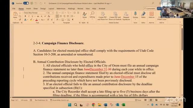 Orem adopts revised campaign disclosure rule: June filing kept, adds Dec. 31 and aligns incumbents with primary filings