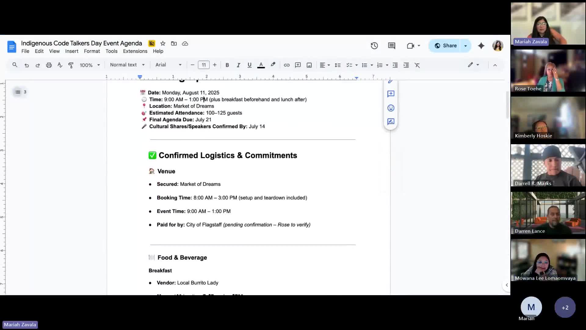 Commission confirms Code Talkers event logistics for Aug. 11 at Market of Dreams; sponsors, speakers and cultural shares still being finalized