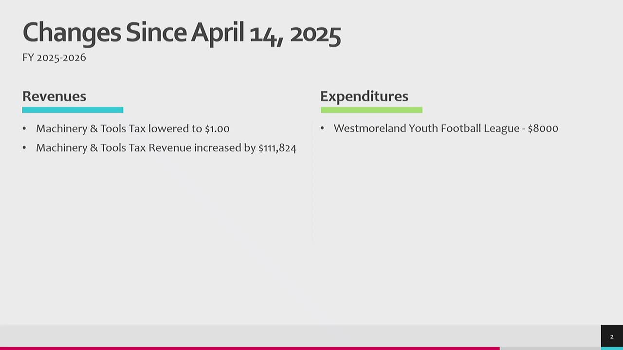 Westmoreland supervisors adopt FY2026 budget, cut machinery-and-tools rate and add youth sports funding