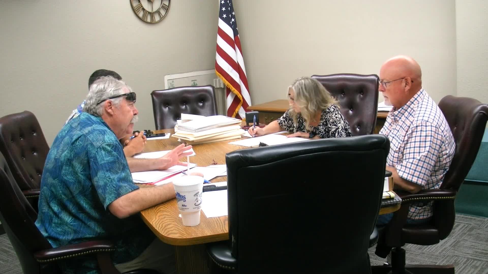 Woods County staff discuss document correction and school bond paperwork; motion made