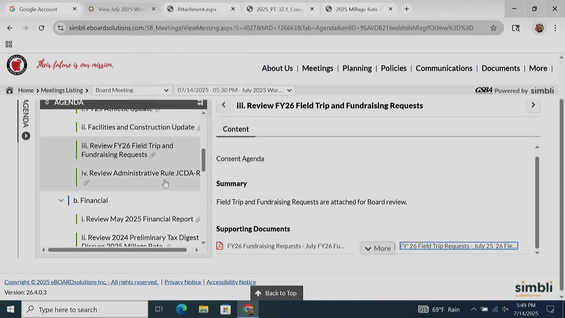 Board tentatively adopts full rollback millage; finance staff outlines digest growth and grant risk