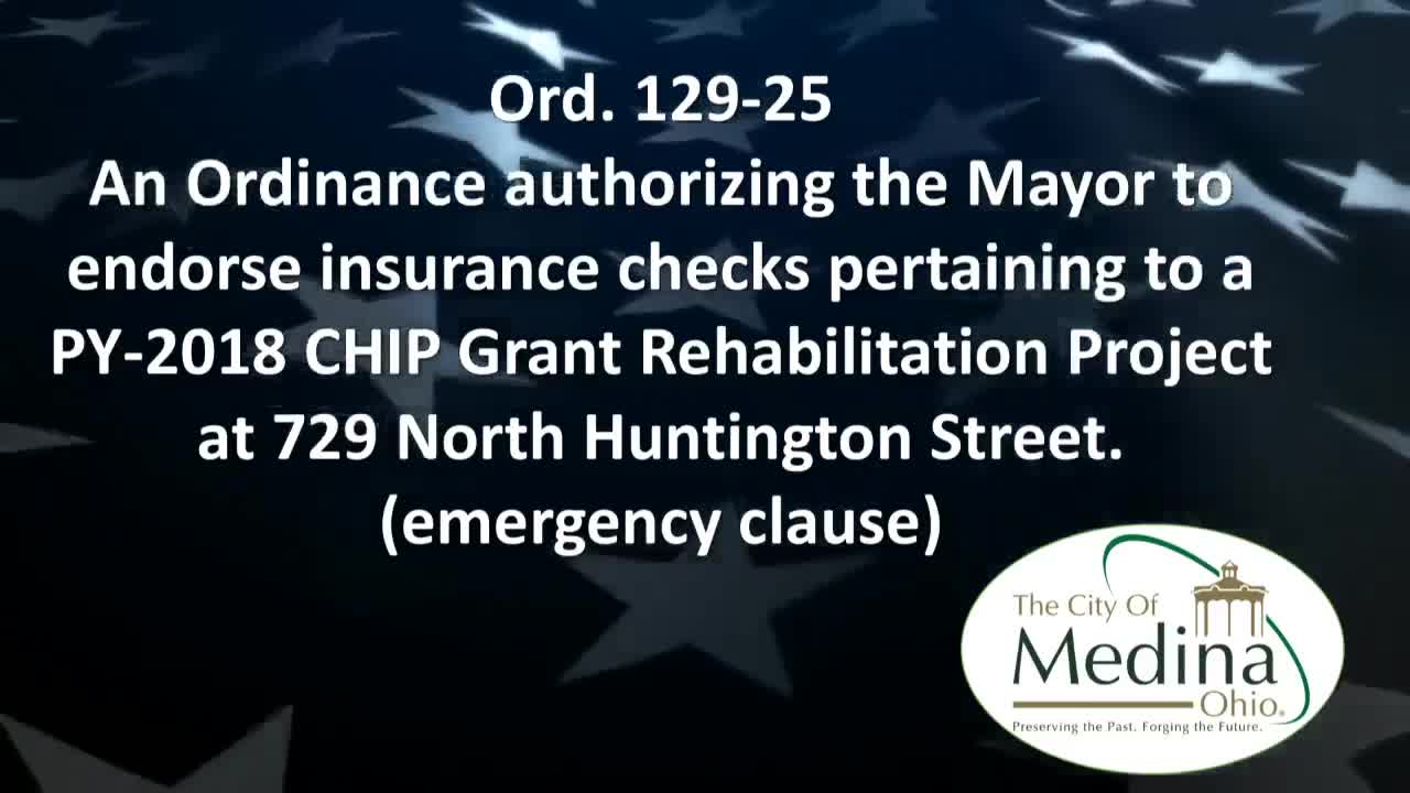 Council authorizes mayor to endorse insurance check for 749 North Huntington to enable repairs