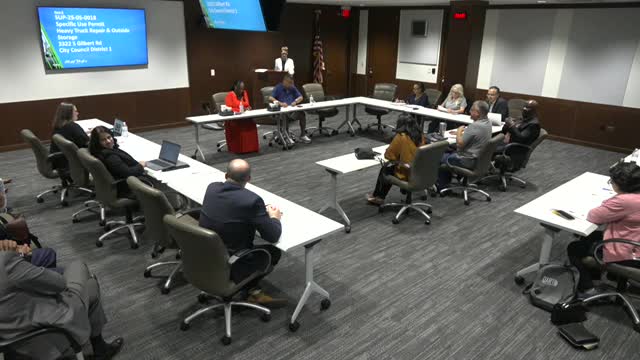 Commission grants specific-use permit for heavy-truck repair and outside storage on South Gilbert Road with screening conditions