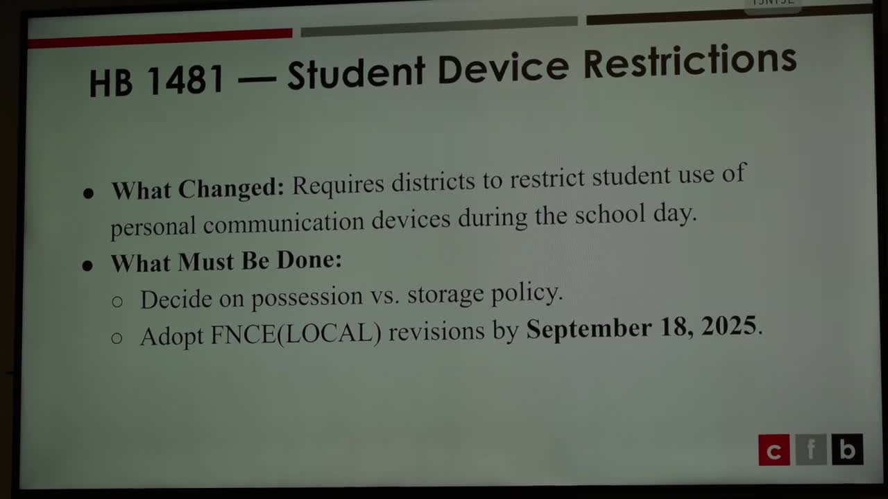 CFB ISD drafts device‑restriction plan after House Bill 1481 requires schools to limit student personal devices